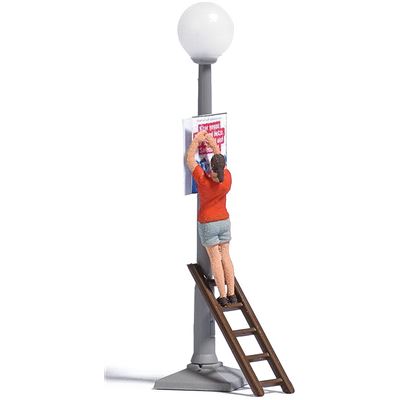 Action Set für die realistische Belebung Ihrer Modellwelt. Frau, die ein Plakat aufhängt. Mit Straßenleuchte (ohne Funktion) und Leiter.