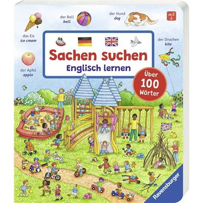 So macht erstes Englisch lernen Spaß! Mit "Sachen suchen" Englisch lernen: Das macht Spaß und geht ganz leicht. Hier gilt es, Gegenstände aus dem Kinderalltag, Kleidung, Essen und die Farben zu benennen und auf Englisch nachzusprechen. Ein allererstes Bilder-Wörterbuch mit über 100 einfachen deutschen und englischen Begriffen. Gemeinsam können so ganz spielerisch die wichtigsten Wörter in zwei Sprachen erlernt werden.