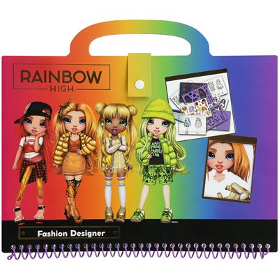Der Fashion Designer besteht aus 2 Stickerblätter, 2 Schablonen, 12 Fashion Ausmalvorlagen, 12 weiße Blätter, 2 Bögen mit 4 Musterdesigns, mit Kunststoffspirale