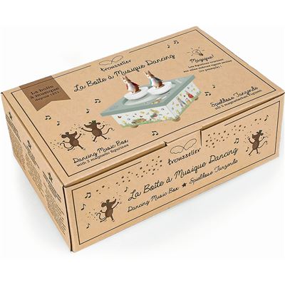 Diese Spieluhr beinhaltet 2 magnetische Figuren, welche sich auf der Tanzfläche drehen. Perfekt das Kind leicht in den Schlaf zu bringen. Dieses Spieldosen-Set ist besonders gut zur Dekoration des Kinderzimmers geeignet. Die beiden Figuren sind abnehmbar: Das Kind kann mit ihnen spielen. Die Figuren drehen sich zum Klang der Musik.