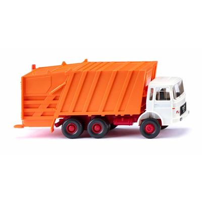 Der MAN Pressmüllwagen in klassischer weiß-oranger Farbgebung steht exemplarisch für die kommunalen Entsorgungsfahrzeuge der 1970er- und 1980er-Jahre. Mit der kubischen Front des Fahrerhauses und einem dreiachsigen Chassis war dieser MAN besonders für schwere Aufgaben wie die Sperrmüllabfuhr geeignet. Das Modell von WIKING orientiert sich an den typischen Umbauten dieser Ära: Die robusten MAN-Fahrgestelle wurden vielfach mit modernen Pressmüllaufbauten nachgerüstet. Detailreich modelliert mit originalgetreuer Bedruckung und zahlreichen Miniaturkomponenten, ist dieser Müllwagen ein Highlight für Fans städtischer Fahrzeugflotten und kommunaler Modelle im Maßstab 1:87.