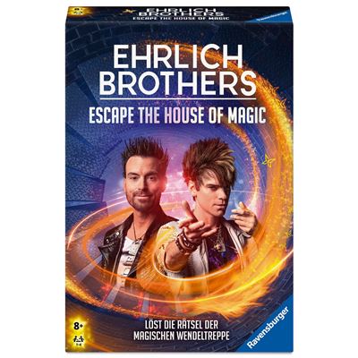 „Ehrlich Brothers – Escape the House of Magic“ ist ein kooperatives Escape-Spiel für Familien und Rätselliebhaber ab etwa 8 Jahren. Die Spielenden befinden sich im geheimnisvollen House of Magic: Katapult-Fahrstuhl und Teleporter sind abgeschaltet, niemand hört die Rufe – der einzige Ausweg führt über eine versteckte Wendeltreppe. Doch nur wer in sechs aufeinanderfolgenden Rätselrunden die richtigen Lösungen findet, kann die sicheren Stufen erkennen und dem Haus entkommen.