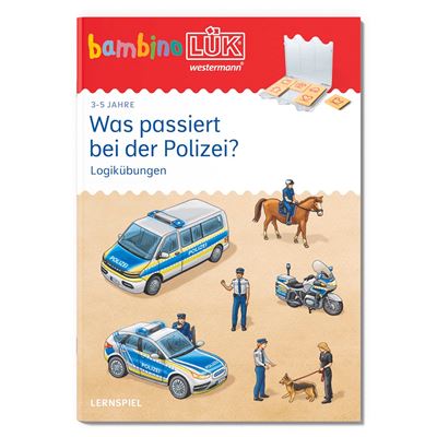 Mit dem bambinoLÜK-Heft „Was passiert bei der Polizei“ begeben sich Kinder ab 3 Jahren auf eine spannende Entdeckungsreise in den Alltag der Polizei. In farbenfrohen und detailreichen Wimmelbildern lernen sie typische Einsatzszenen, verschiedene Polizeifahrzeuge, Uniformen und Ausrüstungsgegenstände kennen. Dabei wird spielerisch Wissen vermittelt und wichtige kognitive Fähigkeiten wie logisches Denken, Beobachtungsgabe und Konzentration gezielt gefördert.