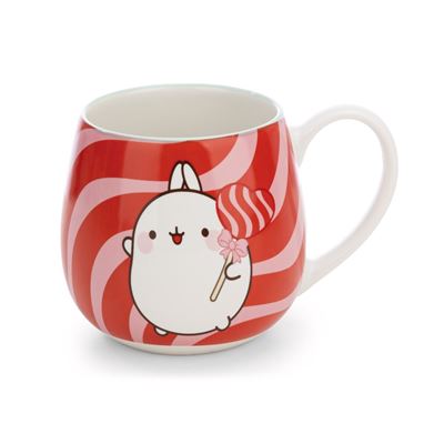 Mit der MOLANG Porzellantasse von NICI beginnt jeder Morgen mit einem Lächeln. Das bauchige Design und das fröhliche rosa-rot gestreifte Muster machen die Tasse zu einem echten Hingucker auf dem Frühstückstisch oder im Büro. Auf der Vorderseite ist MOLANG zu sehen, wie er einen herzförmigen Lolli mit Schleife in den Händen hält – ein liebevolles Detail, das Wärme, Freude und Verspieltheit ausstrahlt. Dieses Design bringt nicht nur Kinderaugen zum Leuchten, sondern zaubert auch Erwachsenen ein Lächeln ins Gesicht.