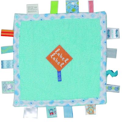 Der Stoff besteht aus Frottee, da dieser von vielen Kindern als angenehm empfunden wird. Die Etiketten werden aus unterschiedlichen Materialien gefertigt, wodurch der Tastsinn gefördert werden soll. Es animiert das Kind zum Sehen und Fühlen.