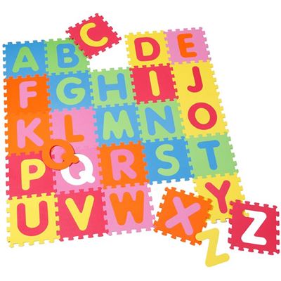 Mit diesen bunten Puzzlematten lernen Kinder spielerisch mit Buchstaben von A - Z umzugehen. Dabei sind der Phantasie der Kinder keine Grenzen gesetzt. Sie können als Spielteppich, Sitzpolster und Schutzunterlage genutzt werden. Zudem werden Tastsinn, Wahrnehmung und Gleichgewichtssinn gefördert. Sie sind feuchtigkeitsbeständig und wärmeisolierend. Mit einem feuchten Tuch lässt sich die Schaumstoffmatte leicht reinigen. Die Buchstaben können aus der Matte leicht herausgelöst werden. Größe der einzelnen Puzzleteile 32 x 32 x 1 cm.