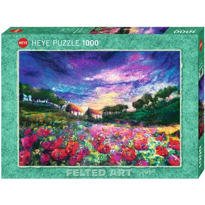 Sundown PoppiesDie schottische Künstlerin Moy Mackay komponiert faszinierende Bilder aus Filz. Wer möchte, kann die Technik bei ihr lernen - oder einfach dieses Puzzle legen!Maße: 500 x 700mm