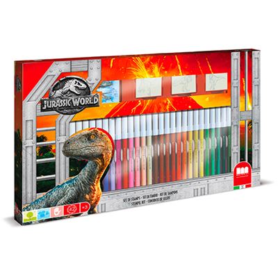 Inhalt: 36 Qualitätsfilzstifte, 3 Holzstempel mit ergonomischem Griff und Naturkautschuk, 1 Stempelkissen, 1 Malbuch